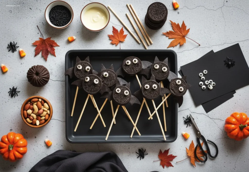- Add Wings: While the chocolate is still wet, gently press two scraped Oreo cookie halves onto the sides of the chocolate-covered ball. These are the bat wings. Put them a bit up to look like they are flying.