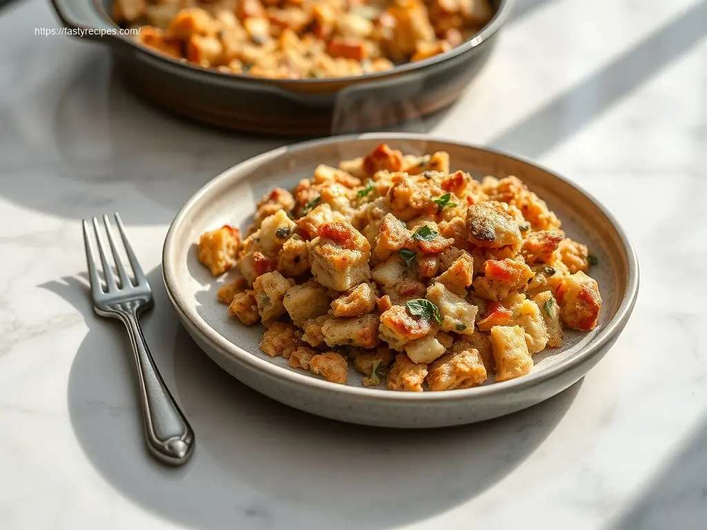 - Remove the stuffing from the oven and let it rest for 10 minutes before serving to allow the flavors to blend.