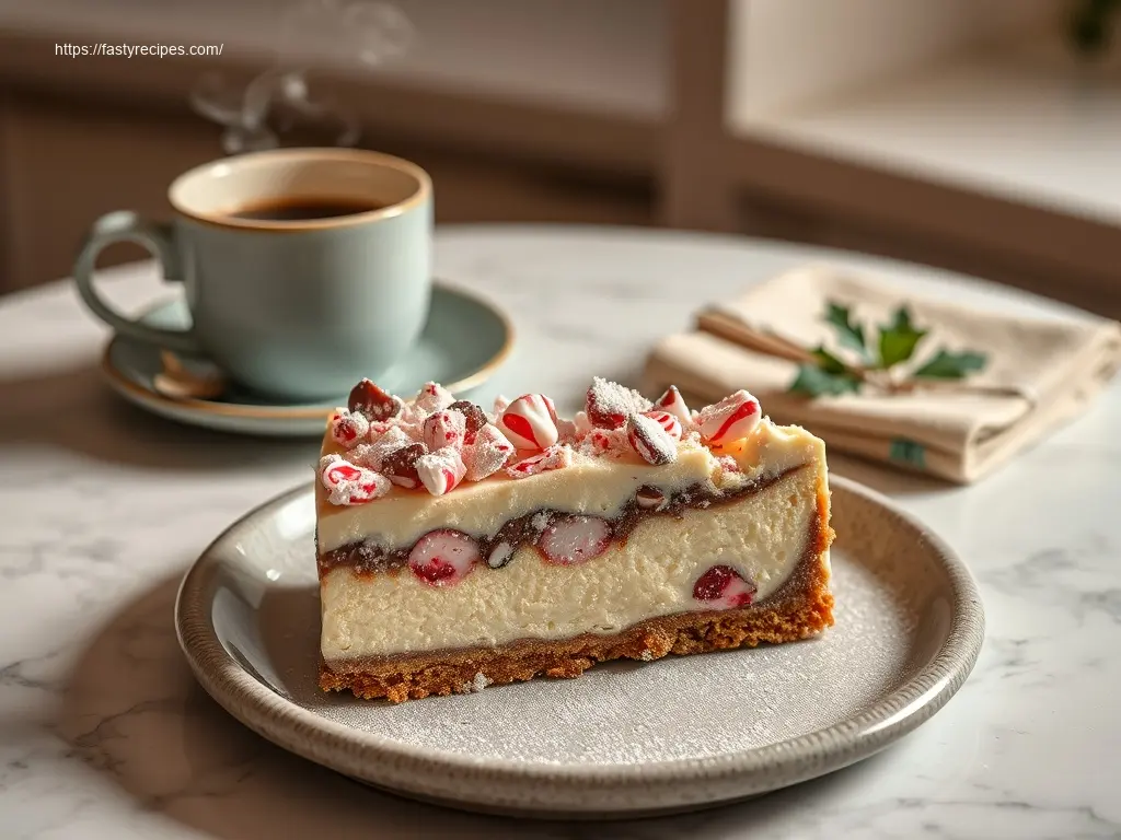 Elegant Peppermint Bark Swirl Cheesecake